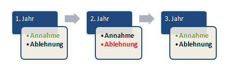Lehnen Sie die Dynamisierung ab, unterbreitet Ihnen der Versicherer im darauf folgenden Jahr nochmals einen Vorschlag für eine erhöhte Versicherungssumme. Auch diesen Vorschlag kann man annehmen oder ablehnen.